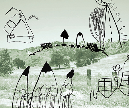 Acrylic and graphite on canvas, monofilament, Gateway laptop, printed mouse pad, mouse, Final Environmental Impact Report from the Chiquita Canyon Landfill 2017 (printed and on CD-R), internet image archive (printed and digital files), laminated gallery maps, ‘Landscape Scenic Quality Scale’ graphite wall text, paintings each 20” x 16”, research materials various dimensions. Solo exhibition at Los Angeles Contemporary Archive.